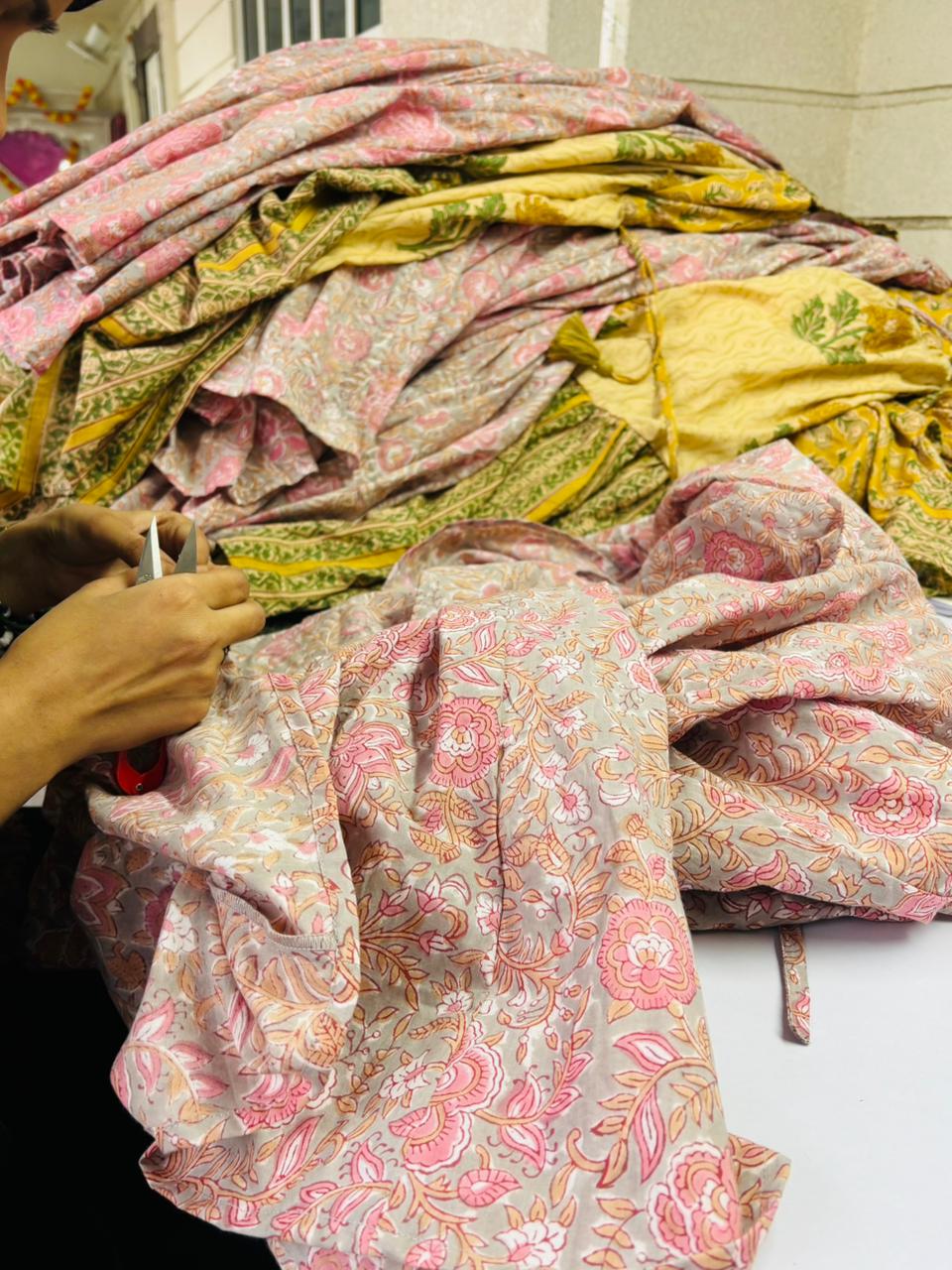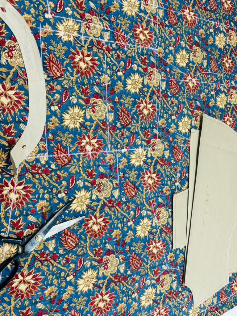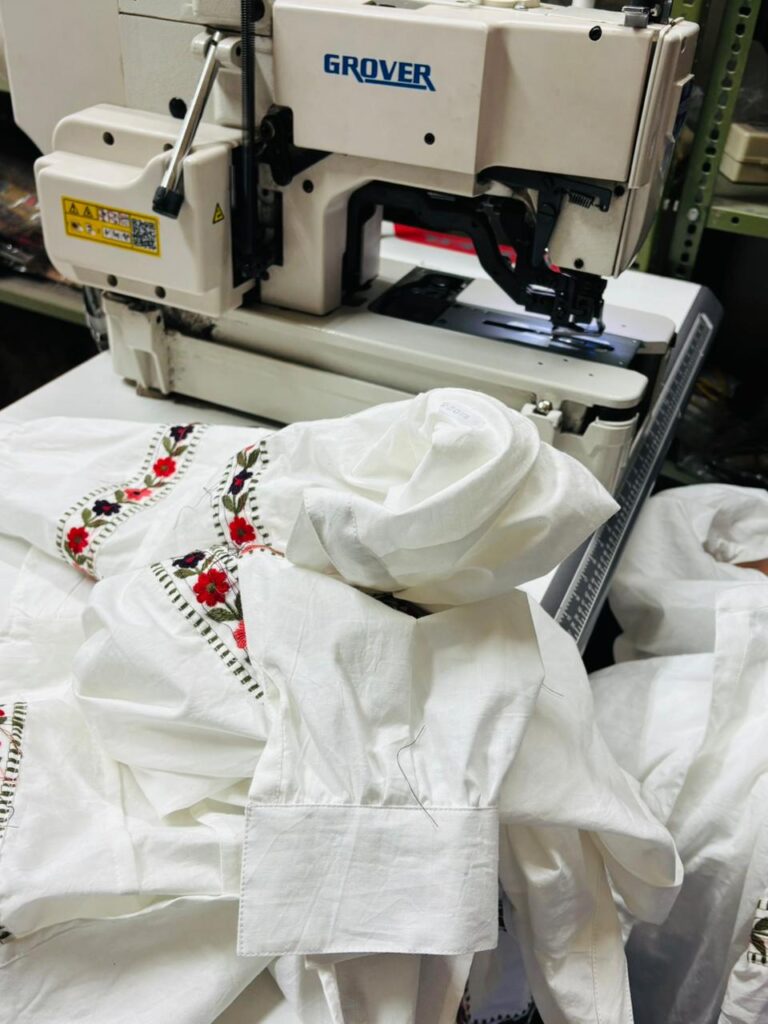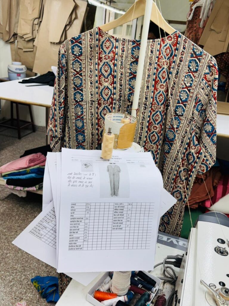 From there, our team carefully sources the right fabrics, prepares patterns, and begins stitching with the help of our experienced artisans, ensuring perfect finishing and comfort in every piece.
